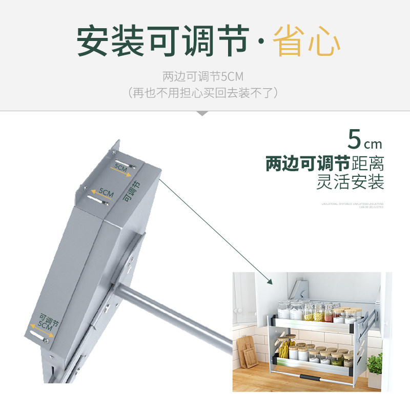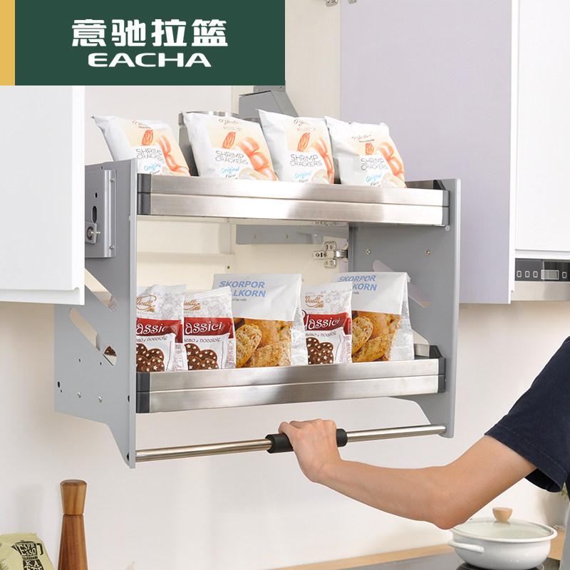 Yi Chi Stainless steel kitchen hanging cabinet lifting basket cabinet pull basket cabinet pull basket shelf kitchen cabinet pull-down seasoning basket