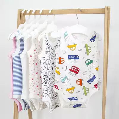 Baby vest ha clothes summer bottoming jumpsuit baby cotton sleeveless triangle snap button open crotch four seasons Universal
