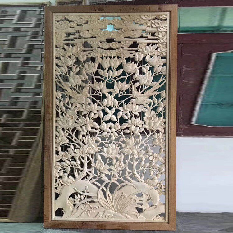 East Yang Wood Carving Chinese Style TV Background Wall Decoration Painting Pendant Living Room Solid Wood Hollowed-out Flower Lattice Partition Full House Custom-Taobao
