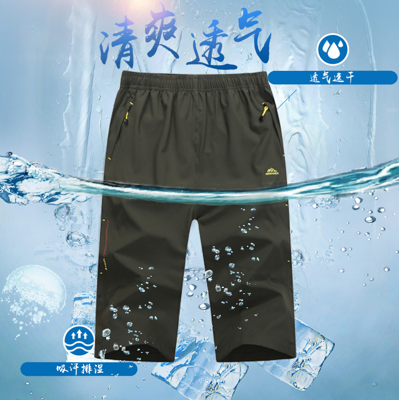 Quick-drying pants men's summer outdoor lightweight elastic slim fit breathable large size quick-drying sports and leisure cropped shorts