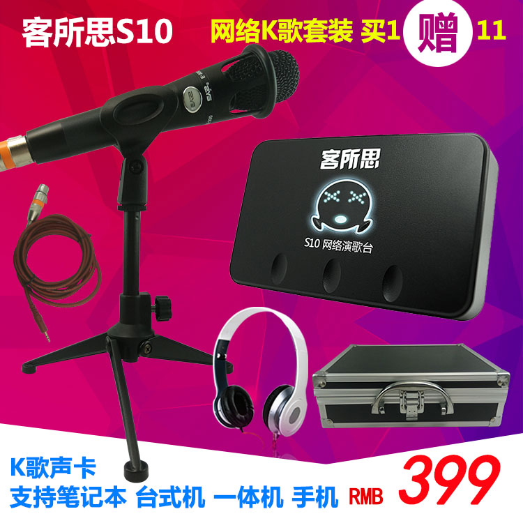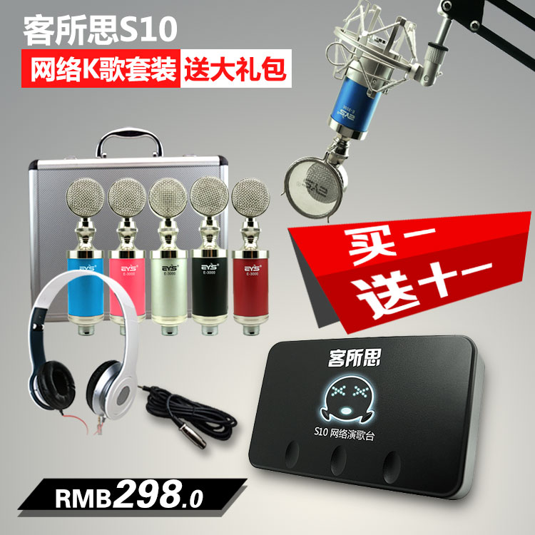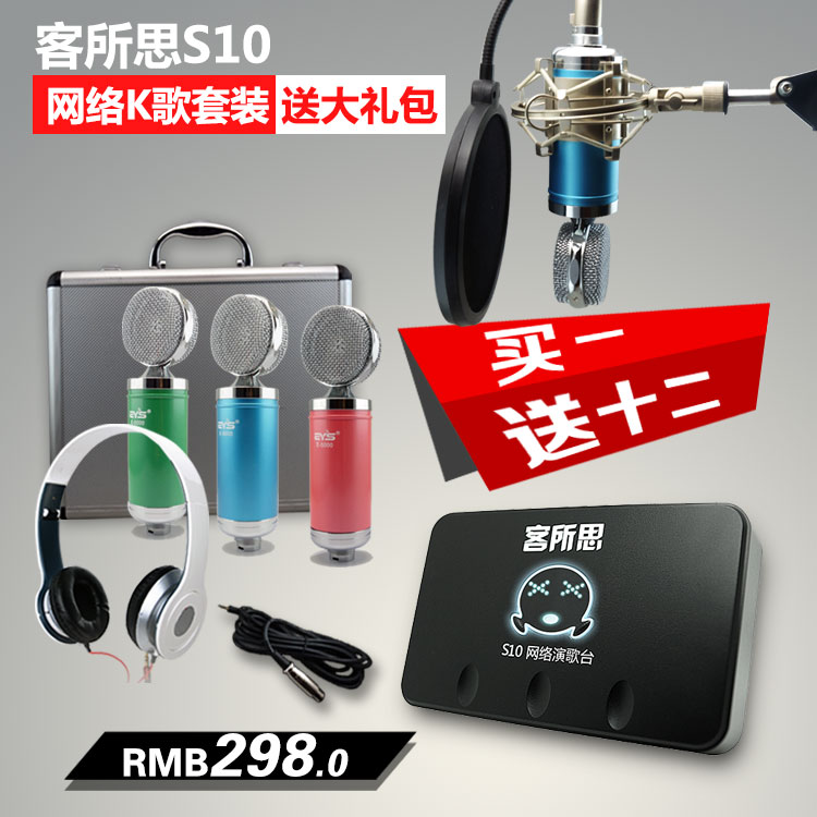 S10 USB independent external sound card set Universal equipment full set of computer notebook desktop mobile phone anchor live condenser microphone K song fast hand shake sound shout wheat recording