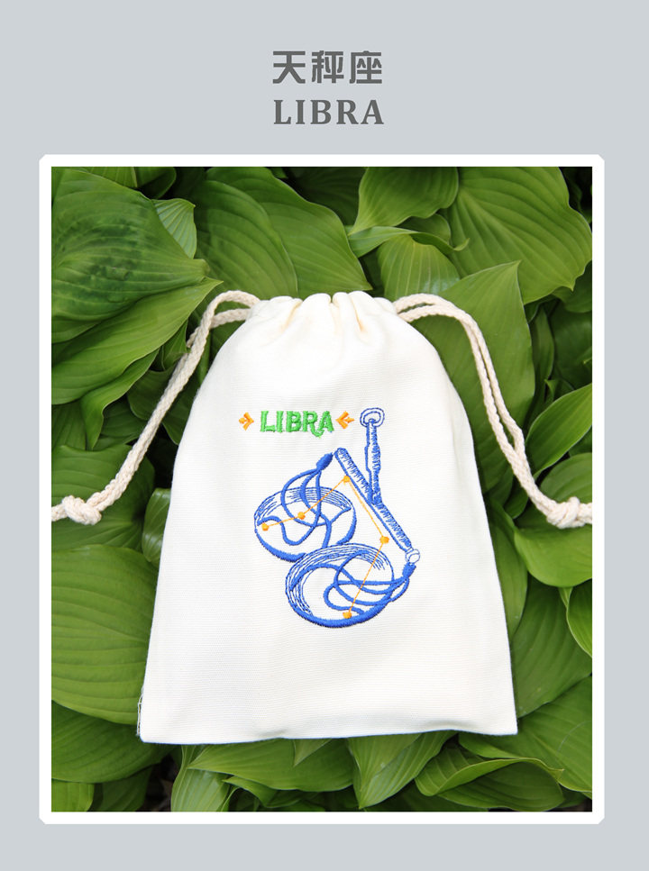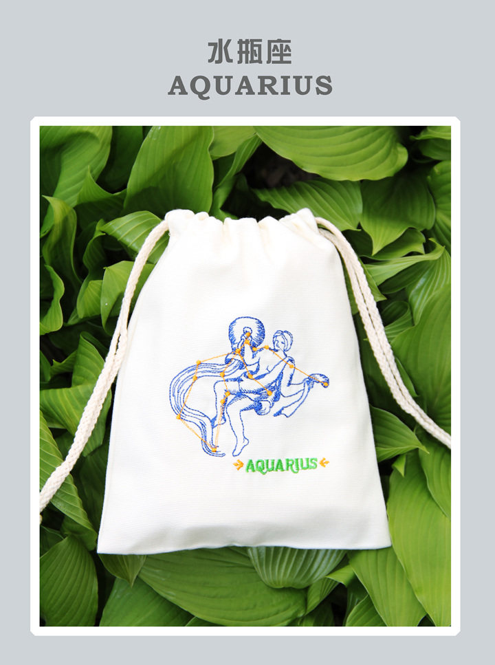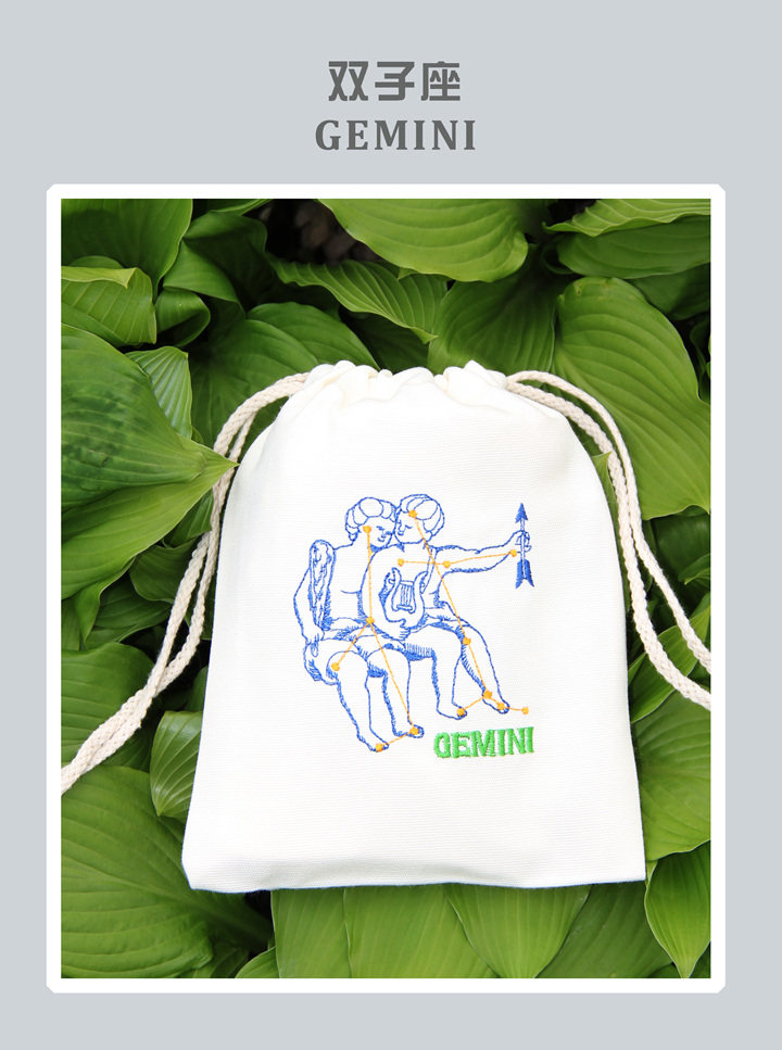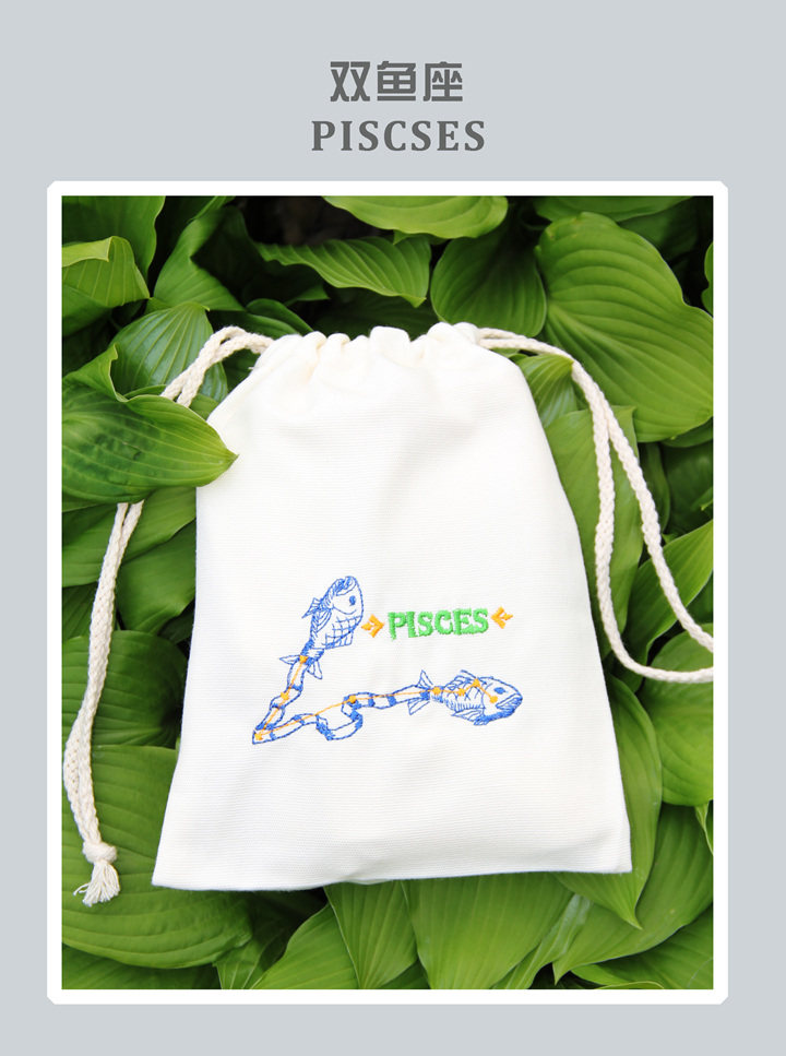 Miao Miao Liangpin Original Twelve Constellation Embroidered Cotton Canvas Drawstring Bag