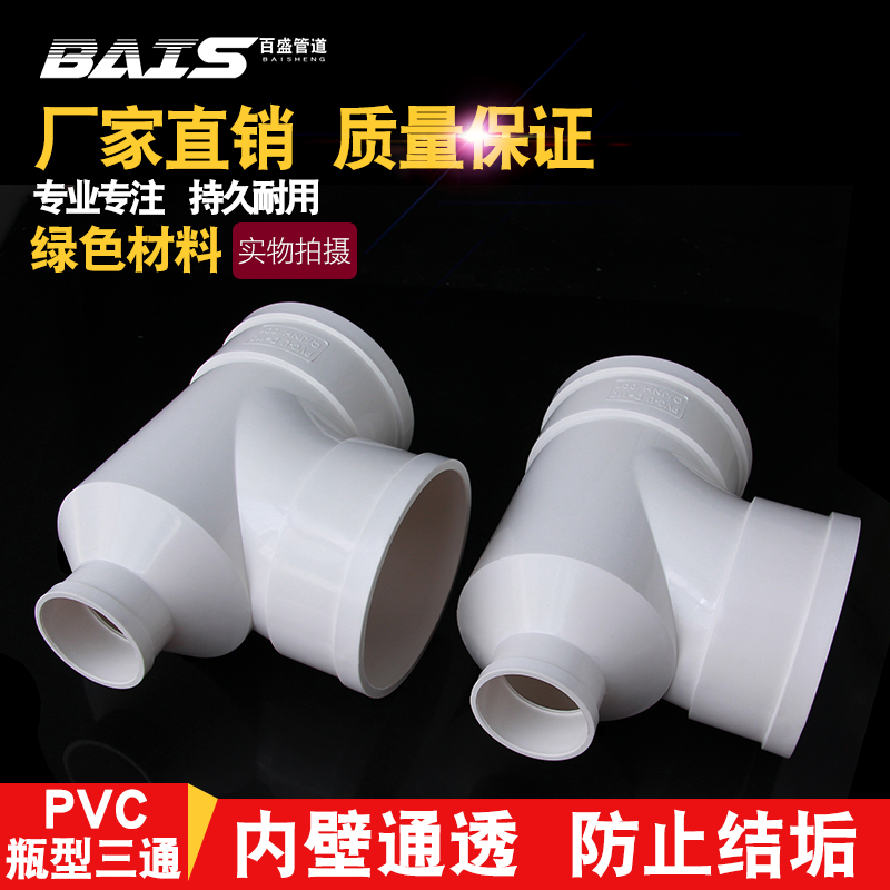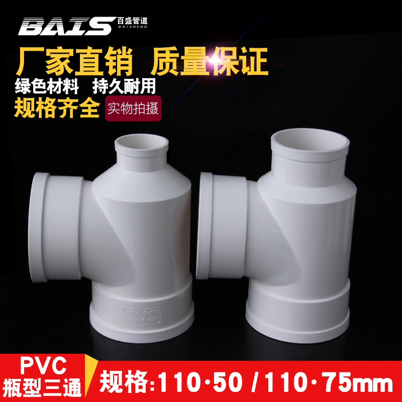 PVC bottle type three-way drain pipe Bottle type three-way PVC sewer pipe fittings Pipe fittings 110*50 110*75