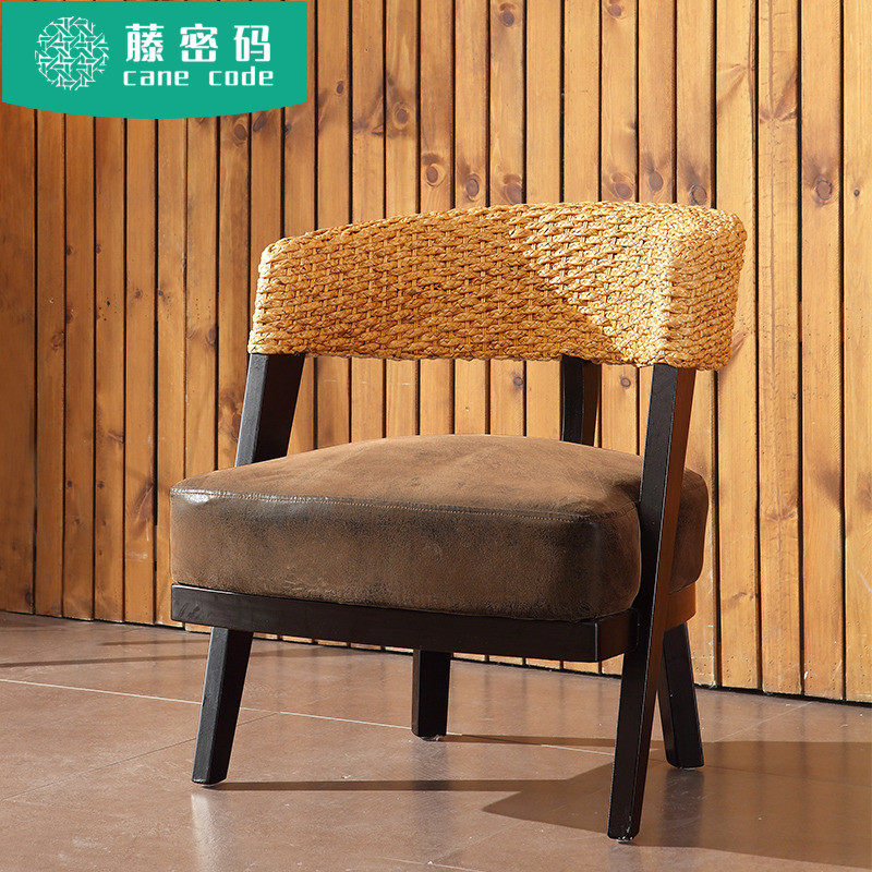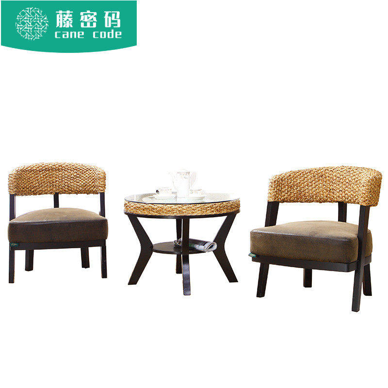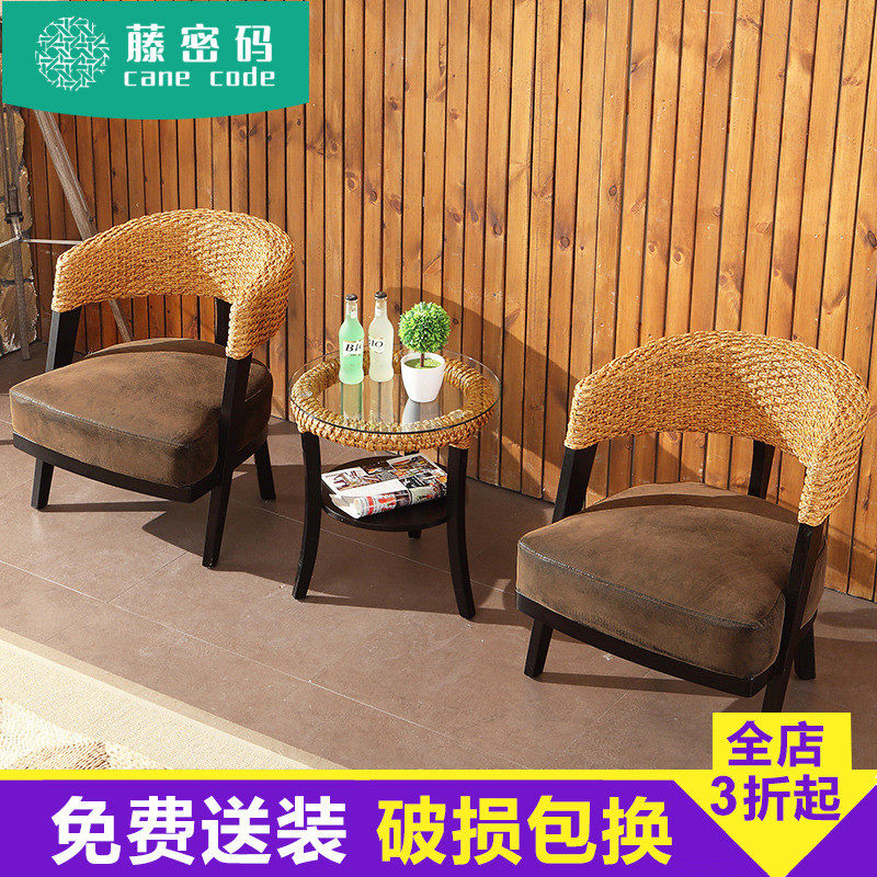 Rattan chair three-piece set single leisure chair outdoor courtyard table and chair combination rattan solid wood chair simple balcony small table and chair