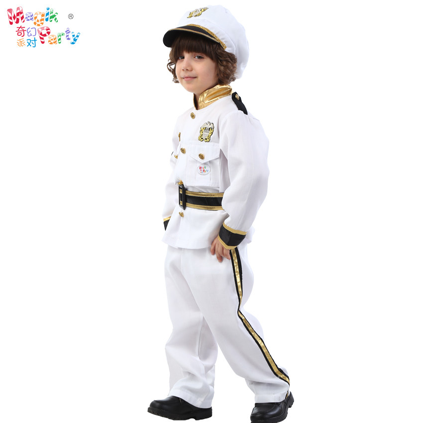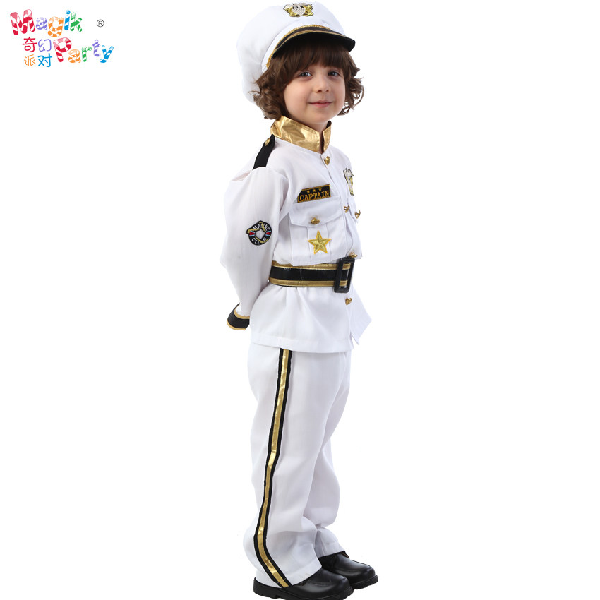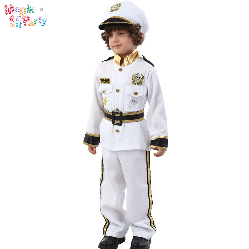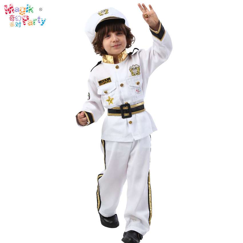 Halloween children's performance costumes Cospaly perform clothes boy skipper Navy sailor Captain Little Police