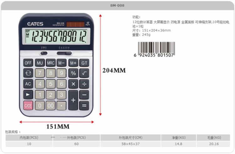 EATES Ida time BM-008 large number calculator big button solar finance accounting office computer-Taobao