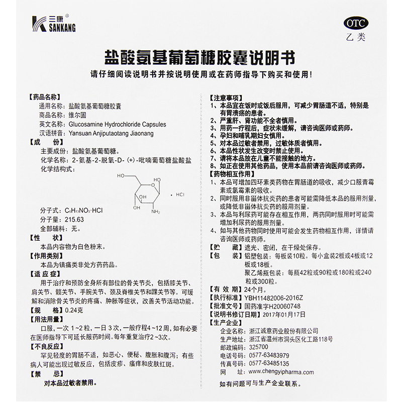 Glucosamine hydrochloride capsules of hydrochloric acid