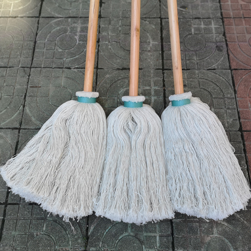 Household line mop floor mop Plus round head mop head Vintage mop Handmade fiber line wooden pole water mop