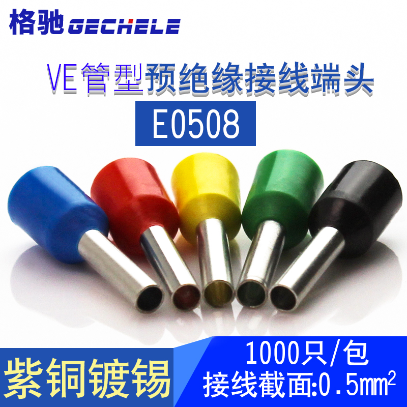 VE0508 Tube-type pre-insulated terminal block Pin-shaped terminal nose cold-pressed end sheath pin copper