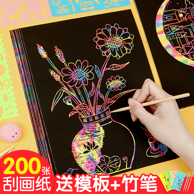 Brilliant scratch paper 8K scratch picture book children diy handmade sand painting a4 kindergarten scratch wax paper elementary school student material pack