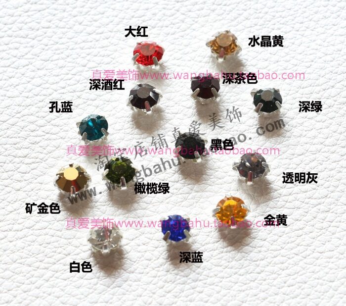 Round 6mm black rhinestones A round 6mm deep purple rhinestone a round 6mm hole blue rhinestone A circular 6mm dark brown rhinestone A round 6mm olive green rhinestone a circle