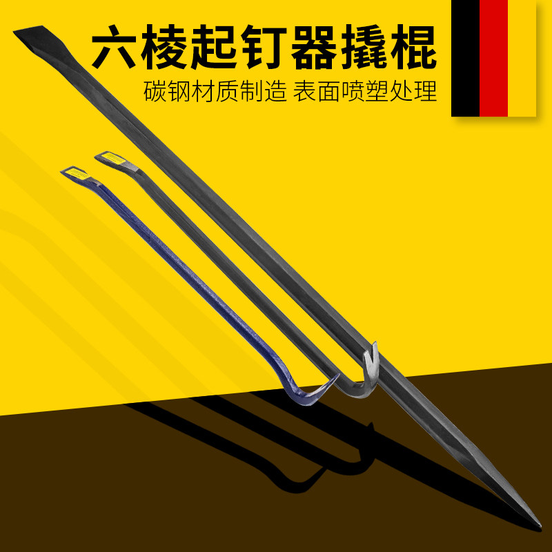 Open up crowbar special steel flat head multifunctional woodworking hexagonal horn nail holder car self-defense high hardness pry bar