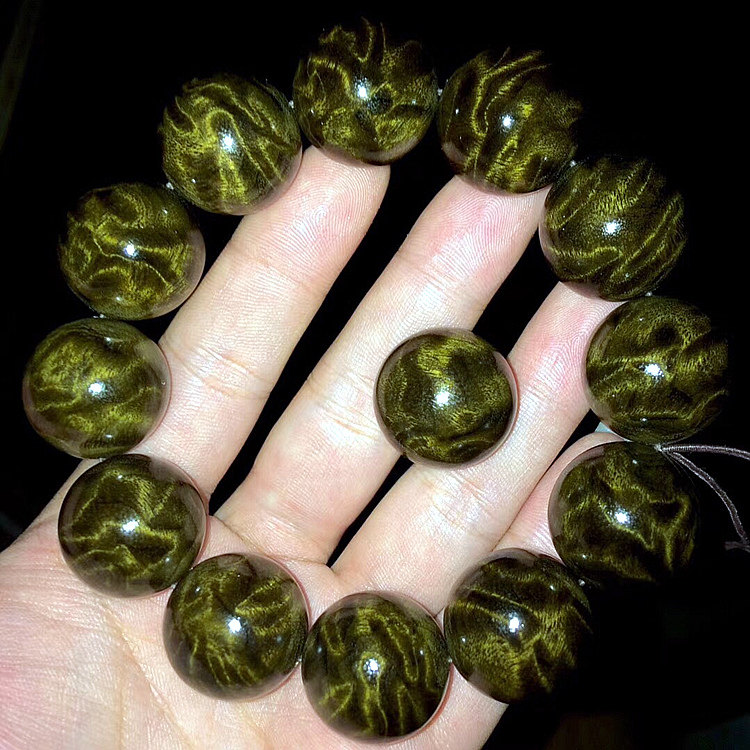 Shady gold silk Numu wood dragon emboldened wave handstring male and female Buddha beads hand over golden silk waterpolo cat eye