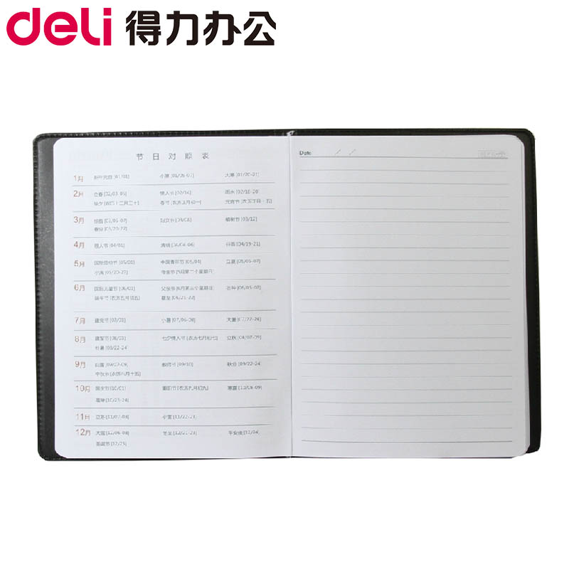 Deli notebook 7911 Leather notebook Leather notebook Business notebook Stationery 120 pages 25K conference book High-grade office business soft leather notebook with notebook diary