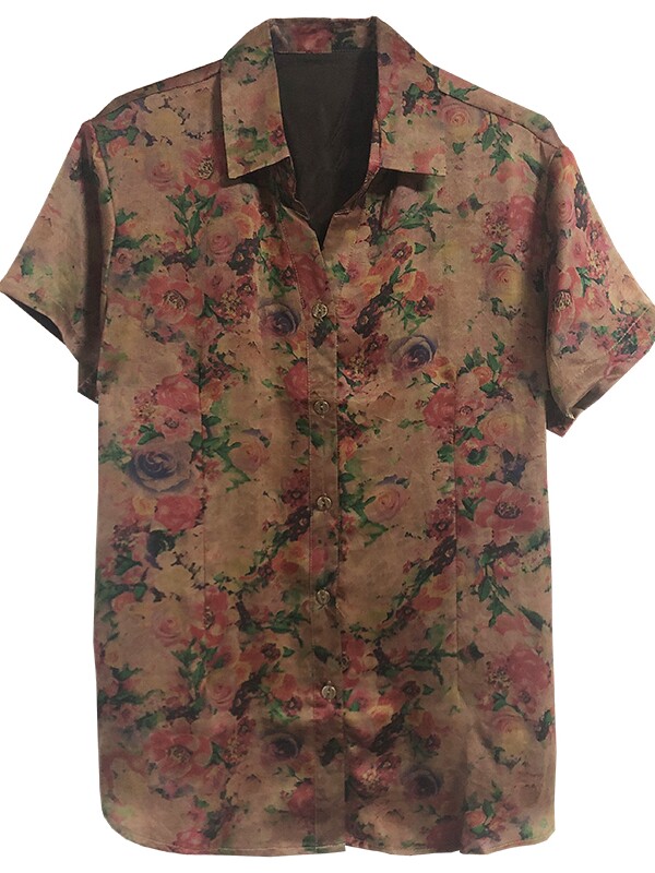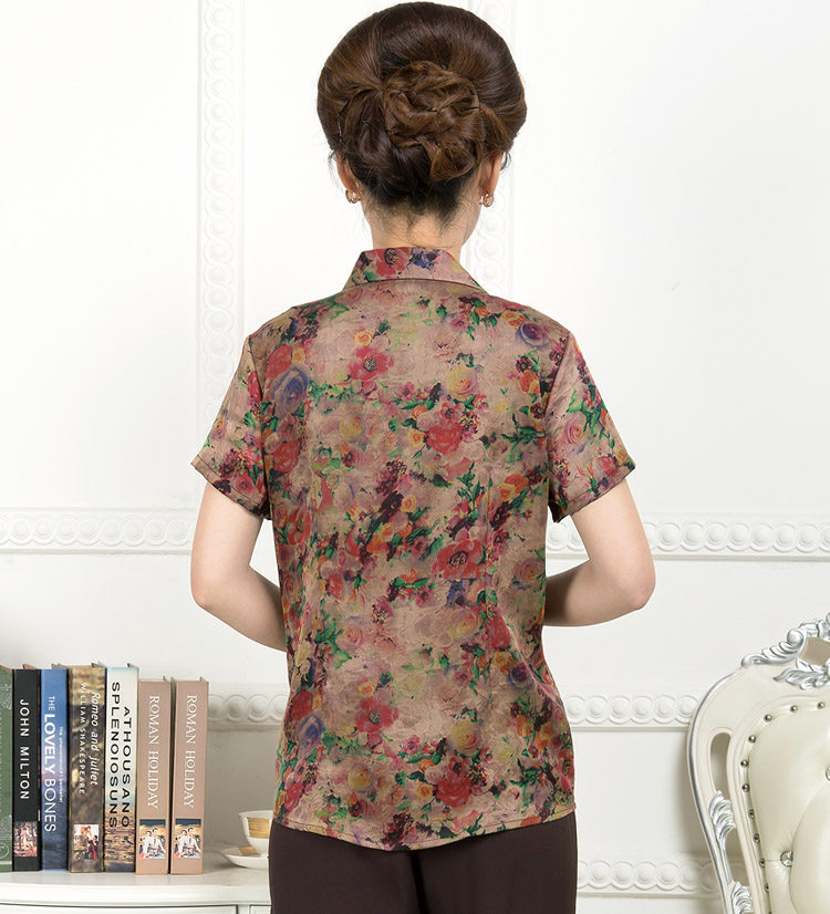 Middle-aged and elderly women's clothing silk fragrant cloud yarn short-sleeved shirt summer mulberry silk shirt elderly cardigan mother's clothing