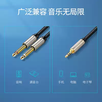 Green link 3 5 Turn dual 6 5 audio cable one-point two adapter 6 35mm large two-core male-to-male dual-channel notebook computer mobile phone electronic organ with mixer power amplifier sound box adapter wire