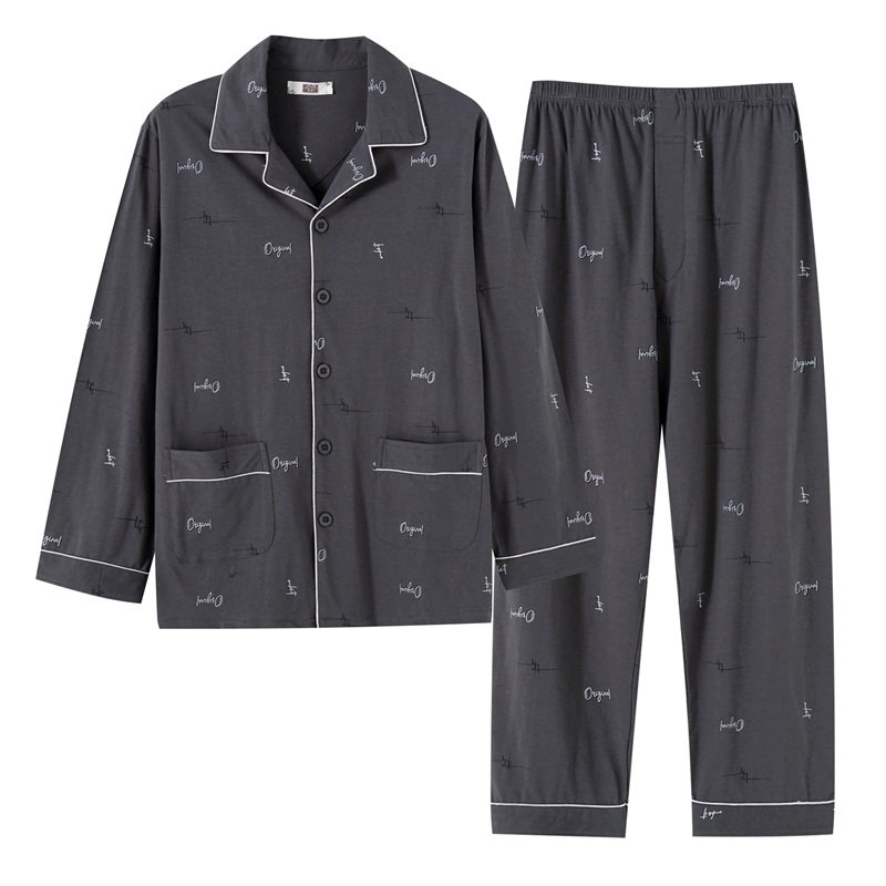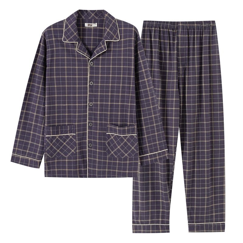 Young men's pajamas summer thin cotton long sleeved man's pajamas all cotton and large yards of men's pajamas high school students' pajamas