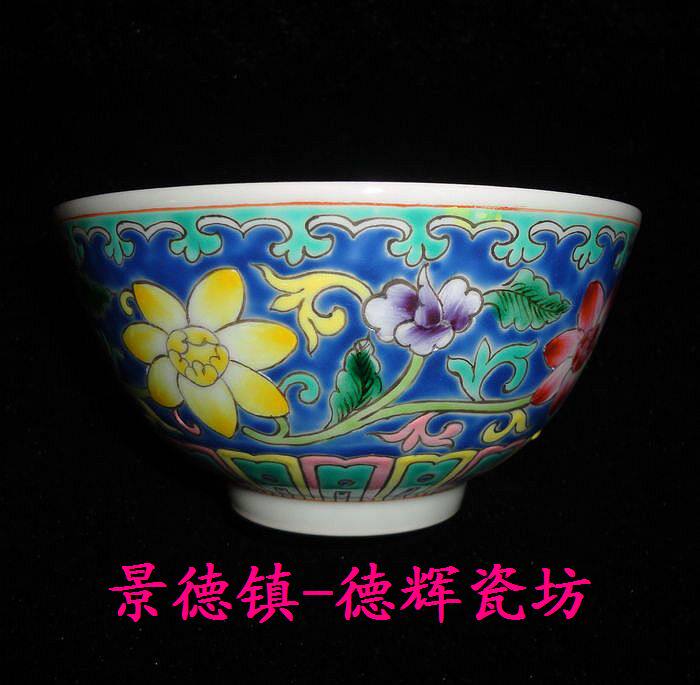 Jingdezhen Cultural Revolution Factory goods porcelain powder color hand-painted blue bottom enamel Rohan bowl Tea Bowl Cultural Revolution Collection
