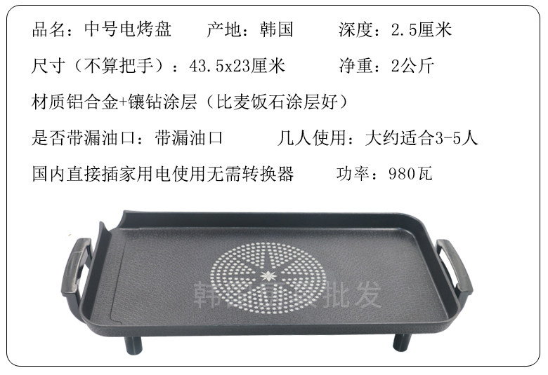 Korean electric baking pan imported baking pan household non-stick electric oven smokeless non-stick pan electric baking pan barbecue meat pan