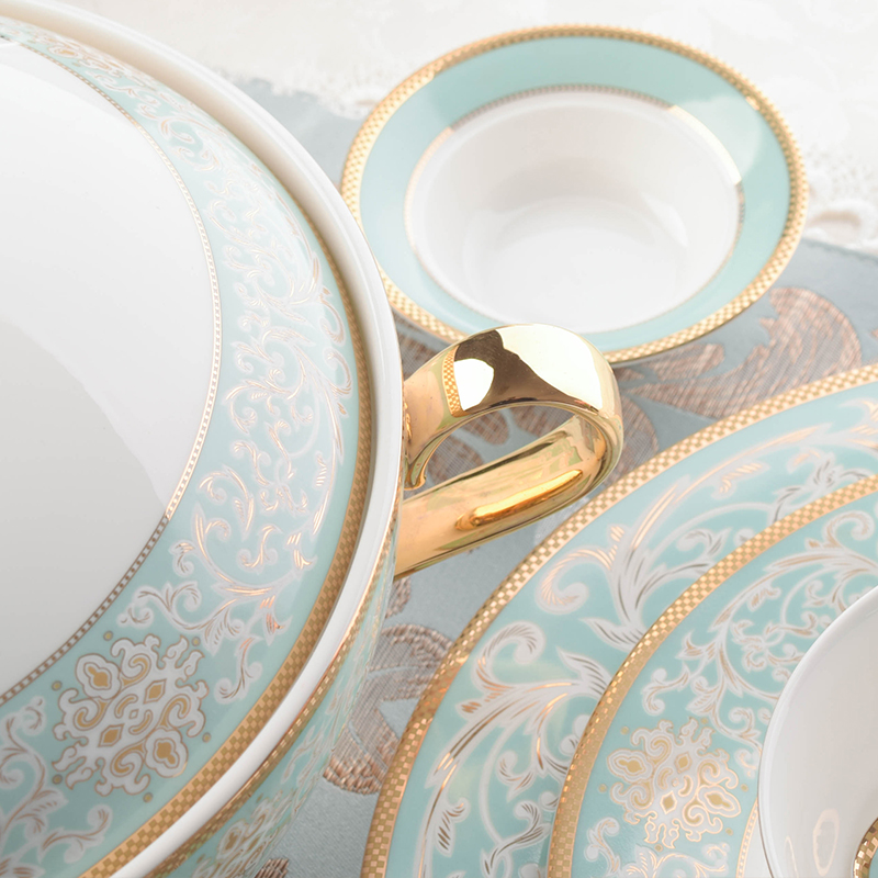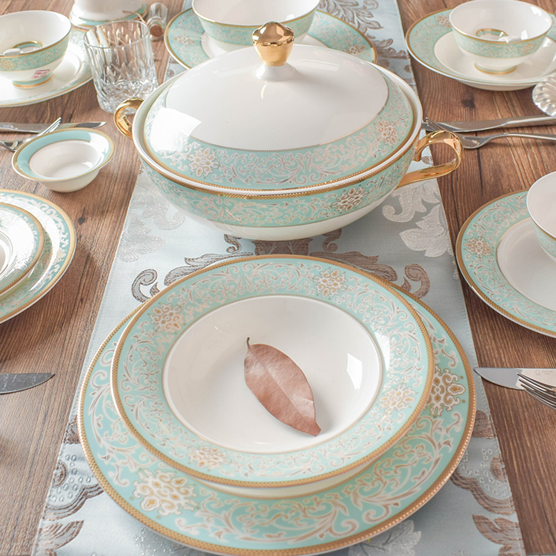 32 head Chinese tableware Golden Blue Bay