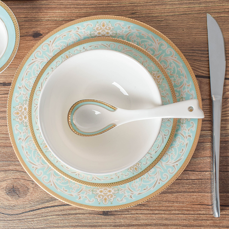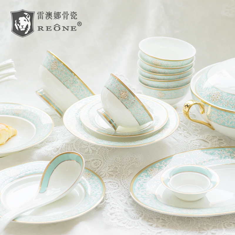 REONE high-grade bone China tableware bowl set Household European-style Phnom Penh bowl dish set Knot wedding product bowl set