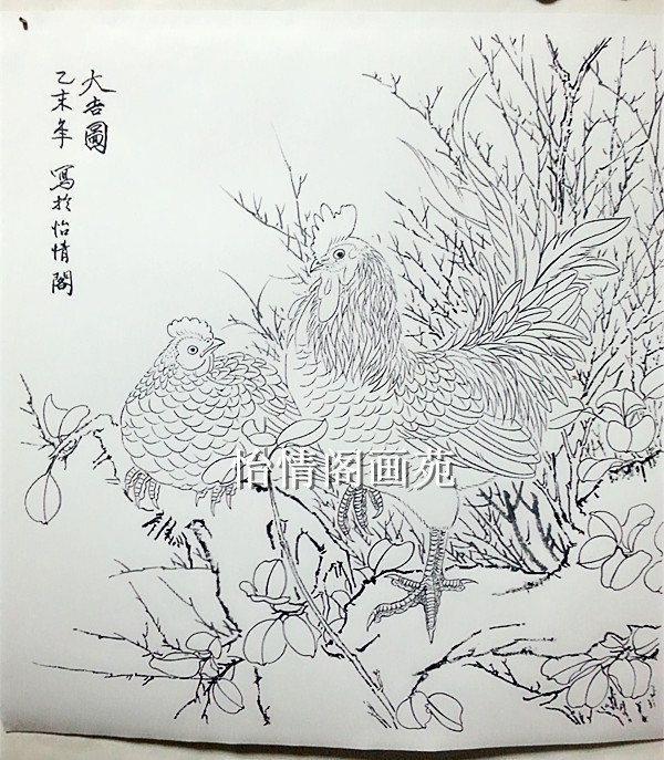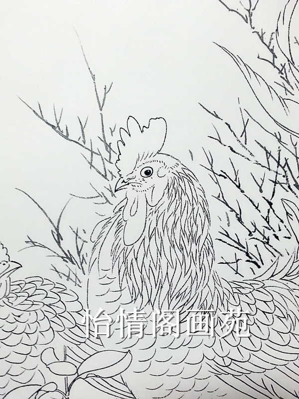 Gongbi white drawing manuscript Gongbi chicken white drawing manuscript landscape painting figure painting flower and bird painting living room painting manuscript homework 118