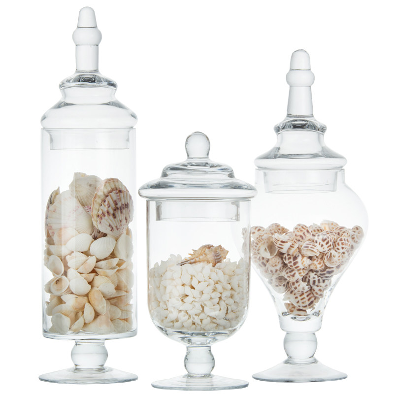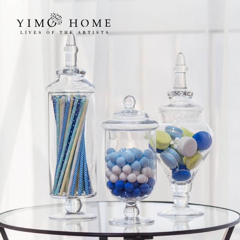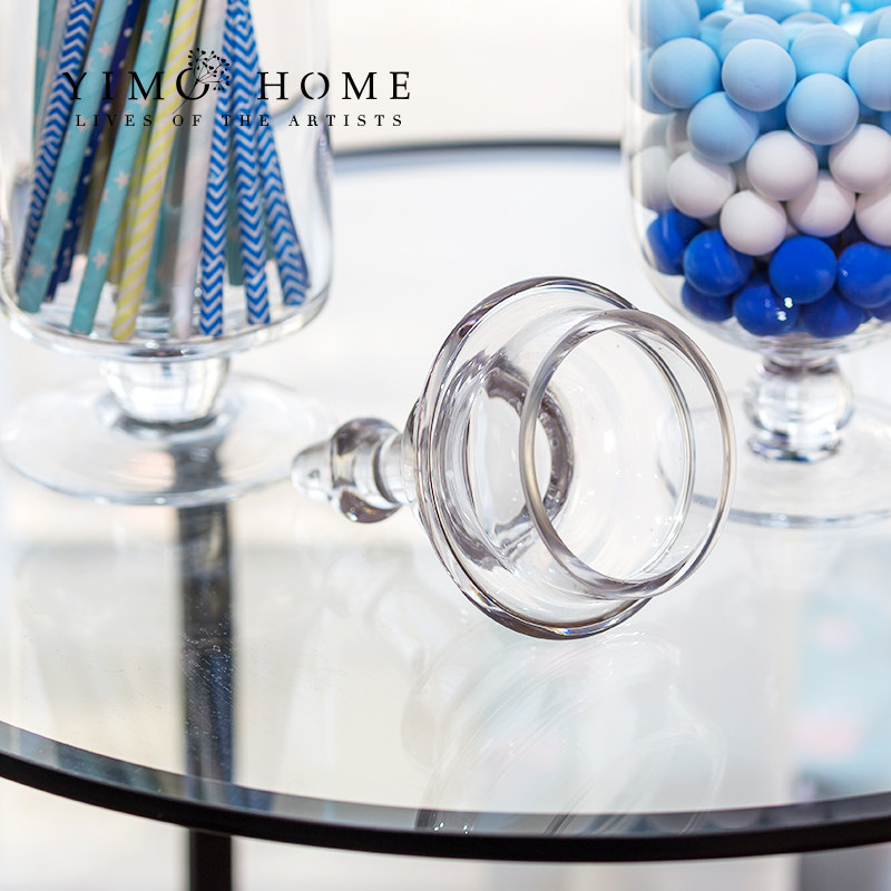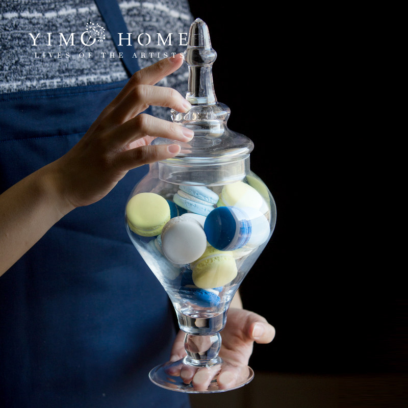 European style glass with lid high foot candy can Wedding soft decoration kitchen sugar tank storage tank creative ornaments