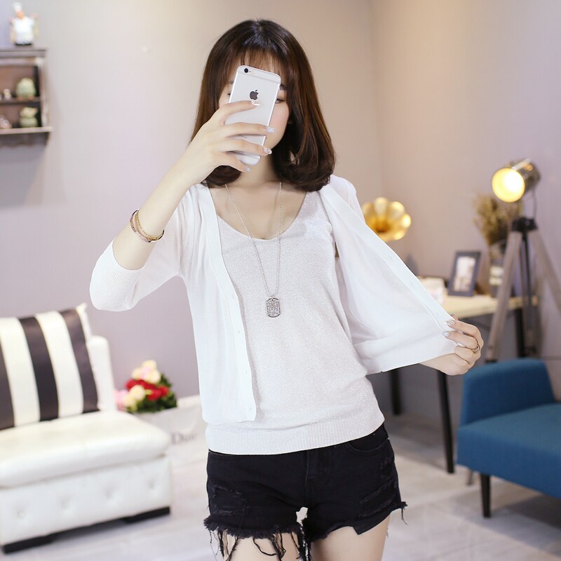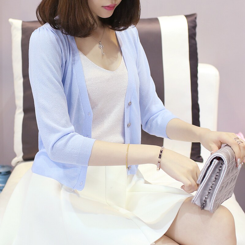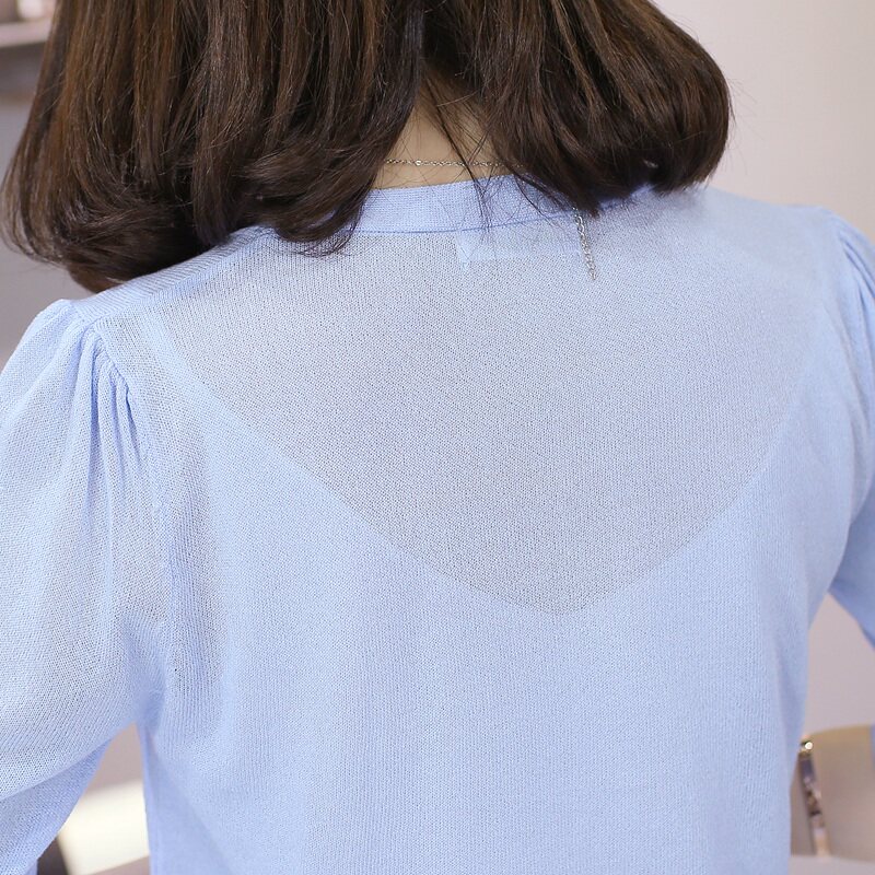 Summer new women's clothing Korean version of candy three-quarter-sleeved knitted sweater blouse short section cardigan air-conditioning shirt sunscreen shirt thin section