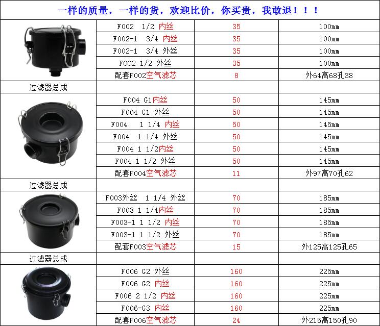 F002 filter core outside 64 * high 68 * inner 38F004 filter core outside 97 * high 70 * internal 62F003 filter core outside 125 * high 123 * internal 65F006 filter core