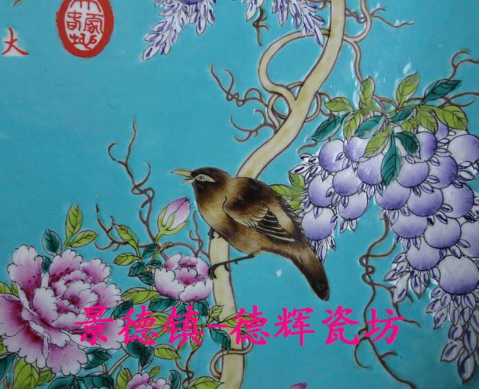 Jingdezhen Cultural Revolution Factory goods Porcelain Rework Powder Color Daya Fasting Green Flowers and Flowers Birds Great Porcelain Dish Decoration Painting Tray