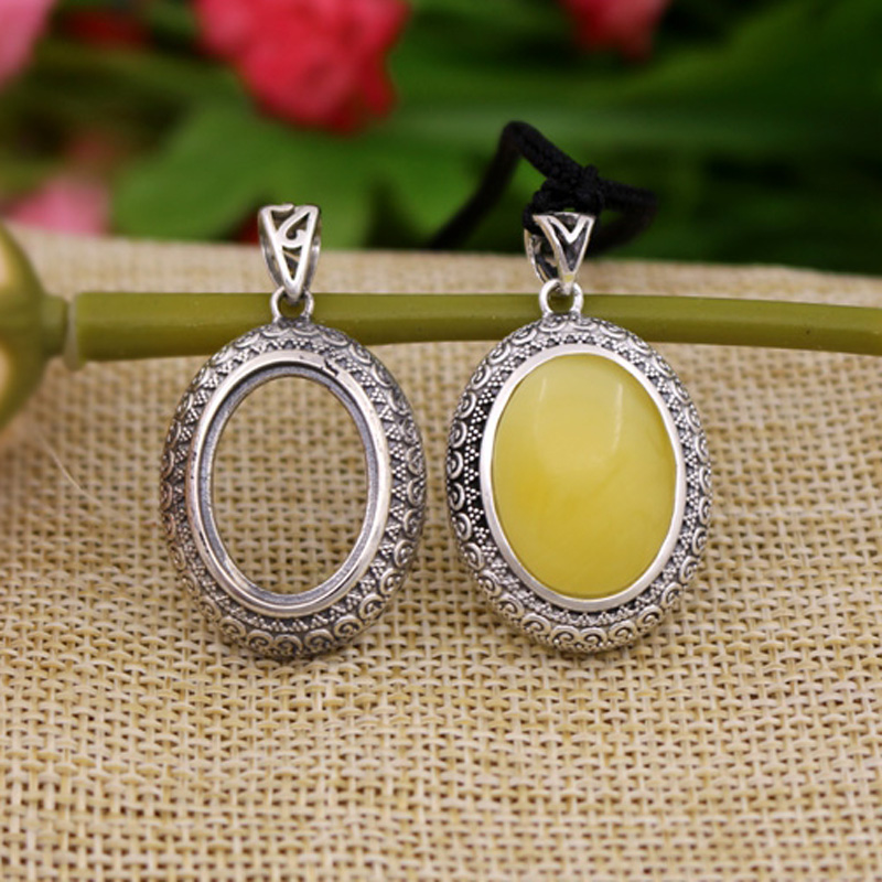 925 sterling silver pendant empty support retro DIY inlaid turquoise jade pendant jade beeswax pendant 10*14 12*17