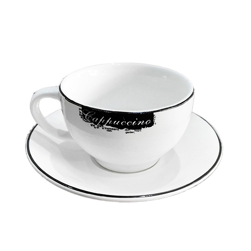 Coffee cup European cappuccino cup couple cup black line multi-specification retro creative bone china with saucer ceramic cup