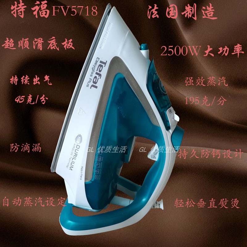 France Made Tefal Tefal FV5718 Home steam iron Enamel Porcelain Base Plate Ironing Bucket Big Power