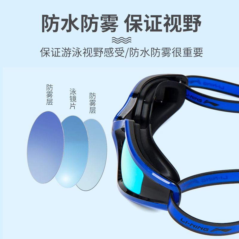 Li Ning Children's swimming goggles high-definition waterproof anti-fog diving swimming glasses boy girl professional big frame swimming goggles