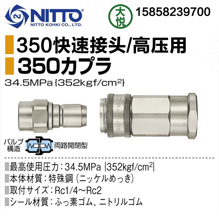 NITTO Quick connector NITTO KOHKI NITTO Hydraulic Hydraulic quick connector 350-P S Special steel High temperature