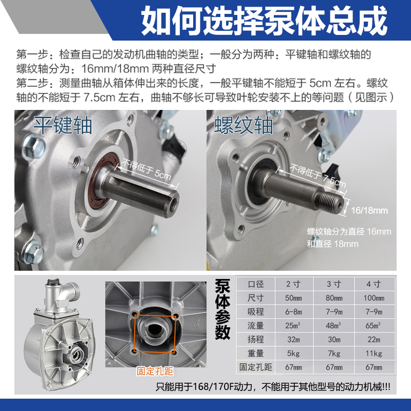 2 inch water pump assembly (flat key 20) 2 inch water pump assembly (thread M16) 2 inch water pump assembly (thread M18) 3 inch water pump assembly (flat key 20) 3 inch water pump assembly (thread M