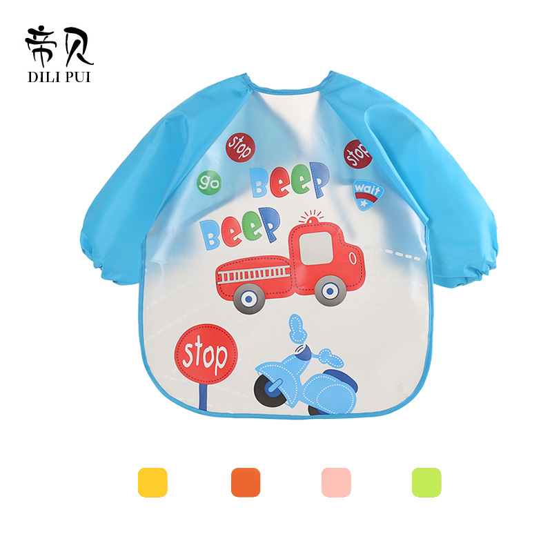 Children's spring and autumn transparent anti-wear clothes free of water and water-eating surrounding pocket for dinner with baby eating long sleeve hood coat and drawing enclosure
