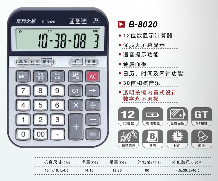 Oriental Star B-8020 Large voice calculator Large button Financial accounting business office newspaper computer