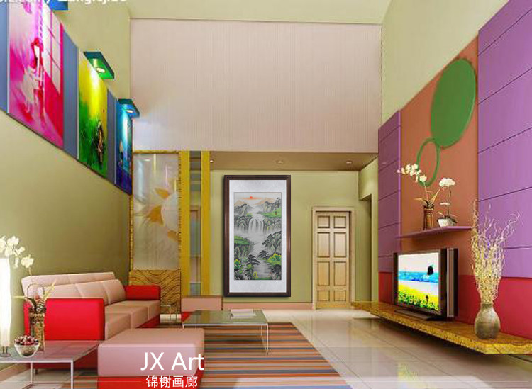 Ancient Vertical Amplitude Landscape Painting Country Painting Living Room Office Background Hung Painting Xu Zhongsheng Calligraphy and Painter Painter