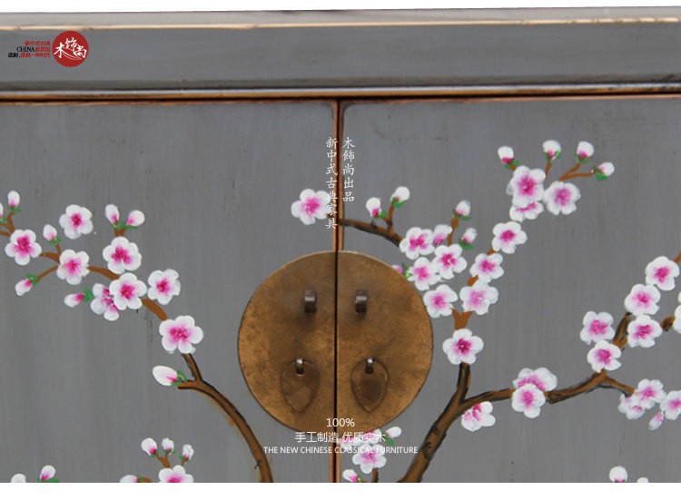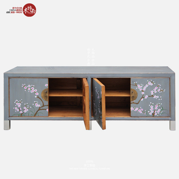 Wood decorated with new Chinese style TV cabinet Retro living room Decorative Cabinet Plum cabinet made of old hand painted fields Imitation Ancient Cabinet Shoes Cabinet