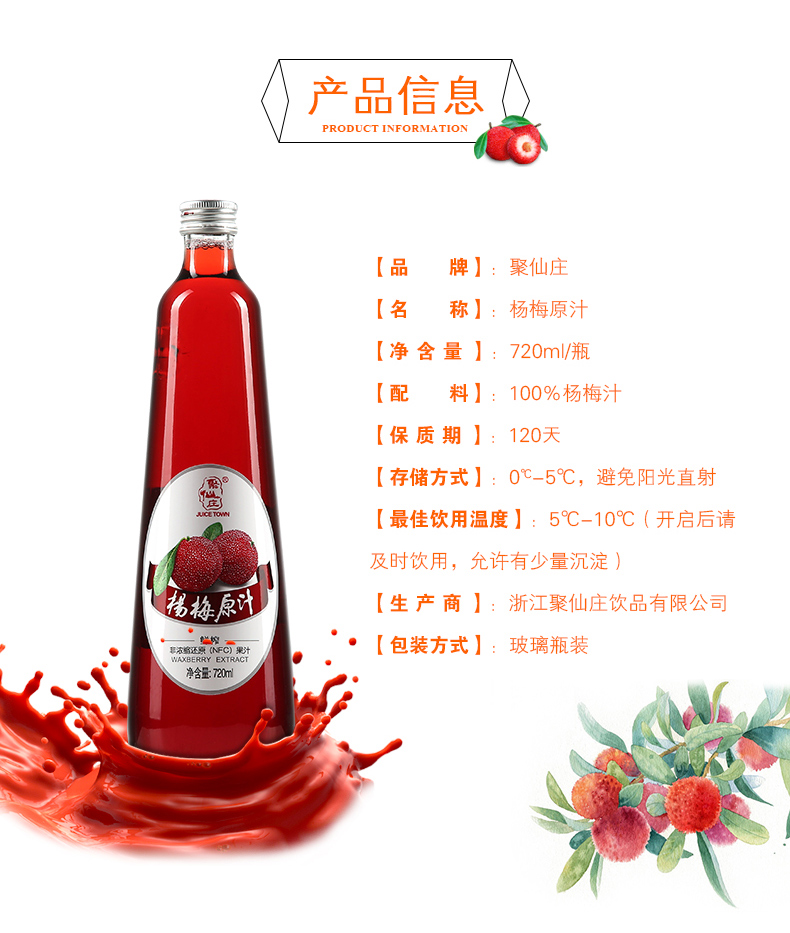 16 years of online marketing of the Xianzhuang Yang Mei original juice 720MLX4 bottle of freshly squeezed fruits and vegetables Yang Mei 100% juice