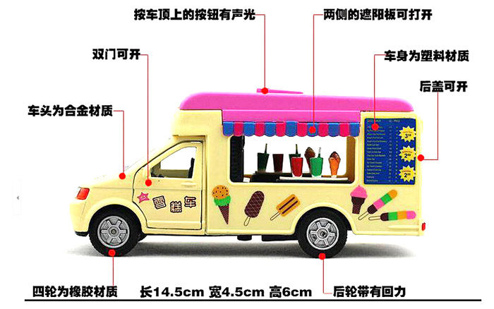 Erteai Alloy Pull Back Sound and Light RV Ice Cream Car Fast Food Car Takeaway Car Ice Cream Car Toy Car