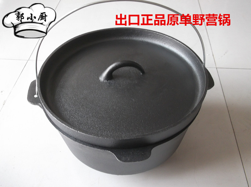 Cast iron camping pot outdoor stew pot soup pot uncoated thickened cast iron pot Dutch pot multi-function pot foreign trade original single