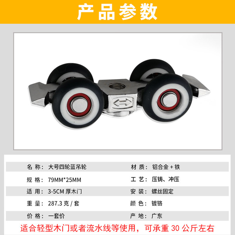 Push-pull sliding door track wheel 4 wheels blue hanging wheel pulley Aluminum hanging door track sliding door wheel Sliding door accessories