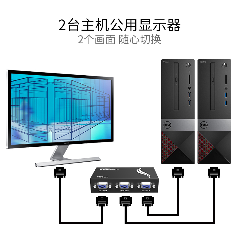 METOVIE Moment 2 Port VGA Switcher 2 In 1 Out Display Monitor Movie 2 In 1 Out MT-15-2CF