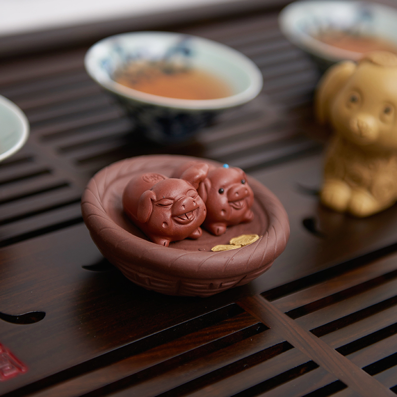 Han and Tang Pig Year tea pet tea plate ornaments can raise tea to play Purple sand ornaments plate Pig Kung Fu tea accessories Tea ceremony