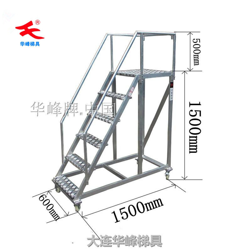 Dalian Huafeng aluminum alloy climbing car mobile platform ladder working platform ladder sampling ladder storage shelf climbing ladder
