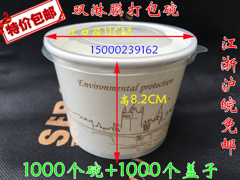 Disposable paper bowl with lid double shower film 500ML thickened planing ice porridge bowl soup bowl sweet potato round dining box 1000