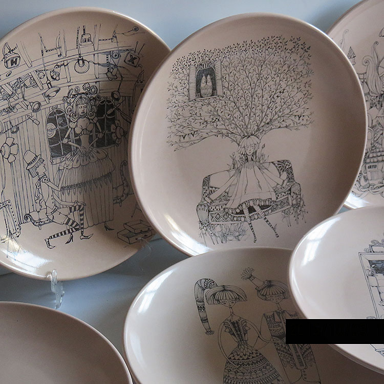 MrSithZam Decorative painting Hanging plate Illustration combination Wall decoration decorative plate Wall plate Wall creative plate Soft painting