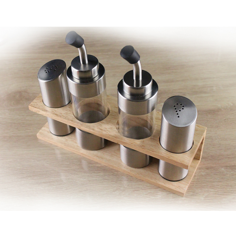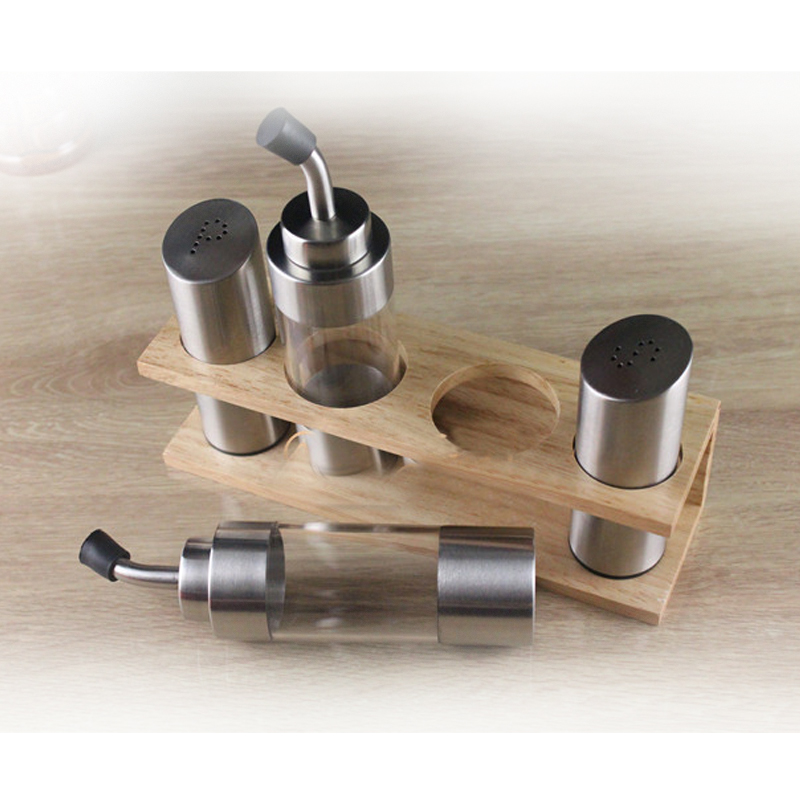 Field Garden Style Solid Wood Base Sauce Bottle 4 pieces Sauce Bottle Suit Oil Pot Pink Bottle Salt Tank 4